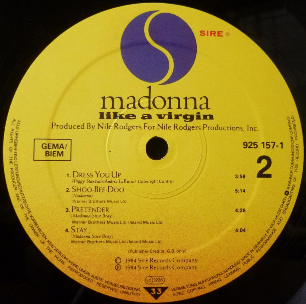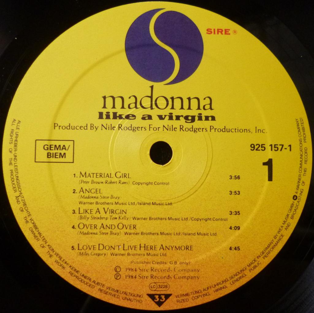 Второй альбом "Like A Virgin", выпущенный в ноябре 1984-го, стал для Мадонны коммерческим прорывом по обе стороны Атлантики, став мультиплатиновым не только в США и Канаде, но и в Великобритании, Германии, Австралии, Испании и многих других странах, обозначив уже мировой статус звезды. На альбоме целая обойма крупных хитов, которые помнят до сих пор - "Like A Virgin", "Material Girl", "Dress You Up", "Angel" и "Love Don't Live Here Anymore". Альбом разошелся тиражом более 10 миллионов копий только в США. soc