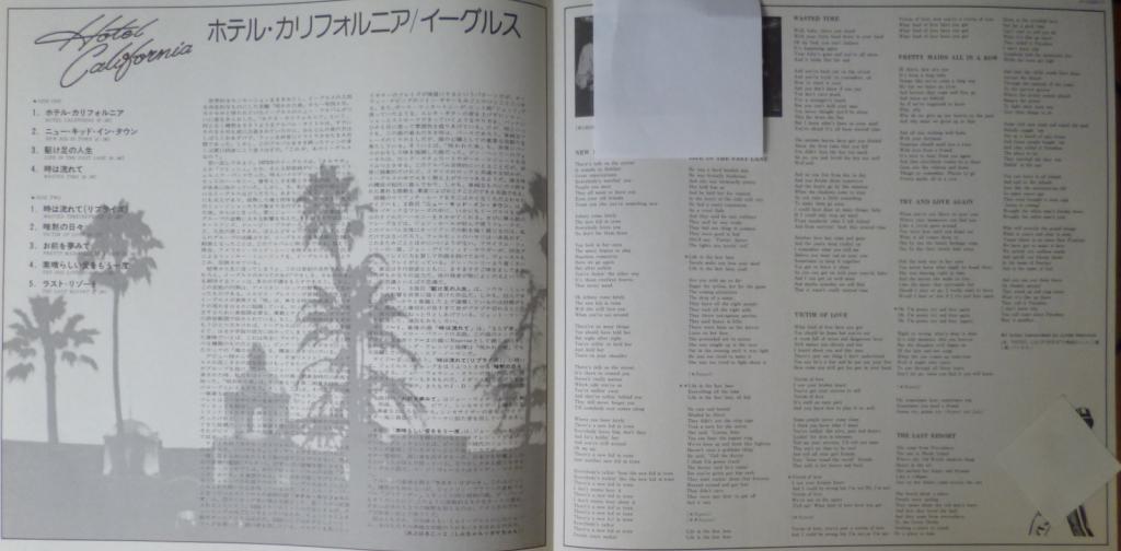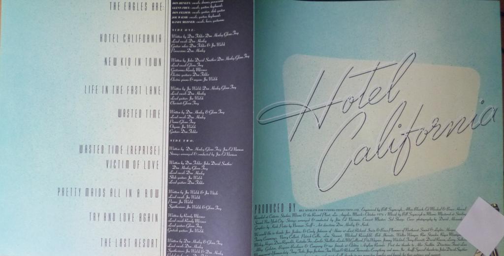 "Hotel California" — студийный альбом группы Eagles, вышедший в 1976 году. В 2001 году альбом "Hotel California" стал 15-м в списке величайших альбомов всех времён, составленном телекомпанией VH1. Gatefold. OBI. Insert. Poster