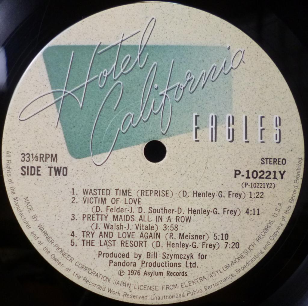 2. A2 New Kid In Town 5:04 3. A3 Life In The Fast Lane 4:46 4. A4 Wasted Time 4:55 5. B1 Wasted Time (Reprise) 1:22 6. B2 Victim Of Love 4:11 7. B3 Pretty Maids All In A Row 3:58 8. B4 Try And Love Again 5:10 9. B5 The Last Resort 7:20 |