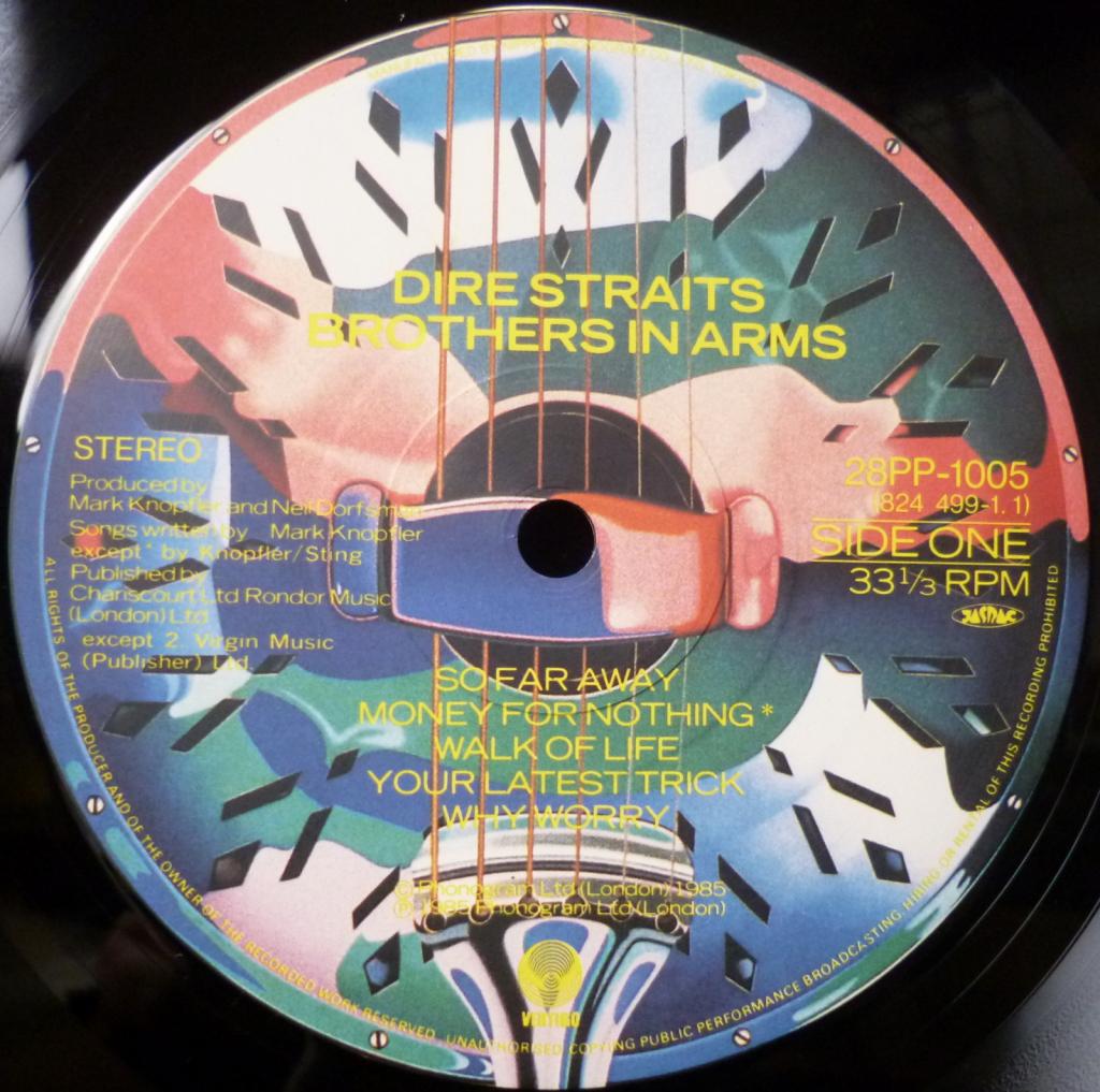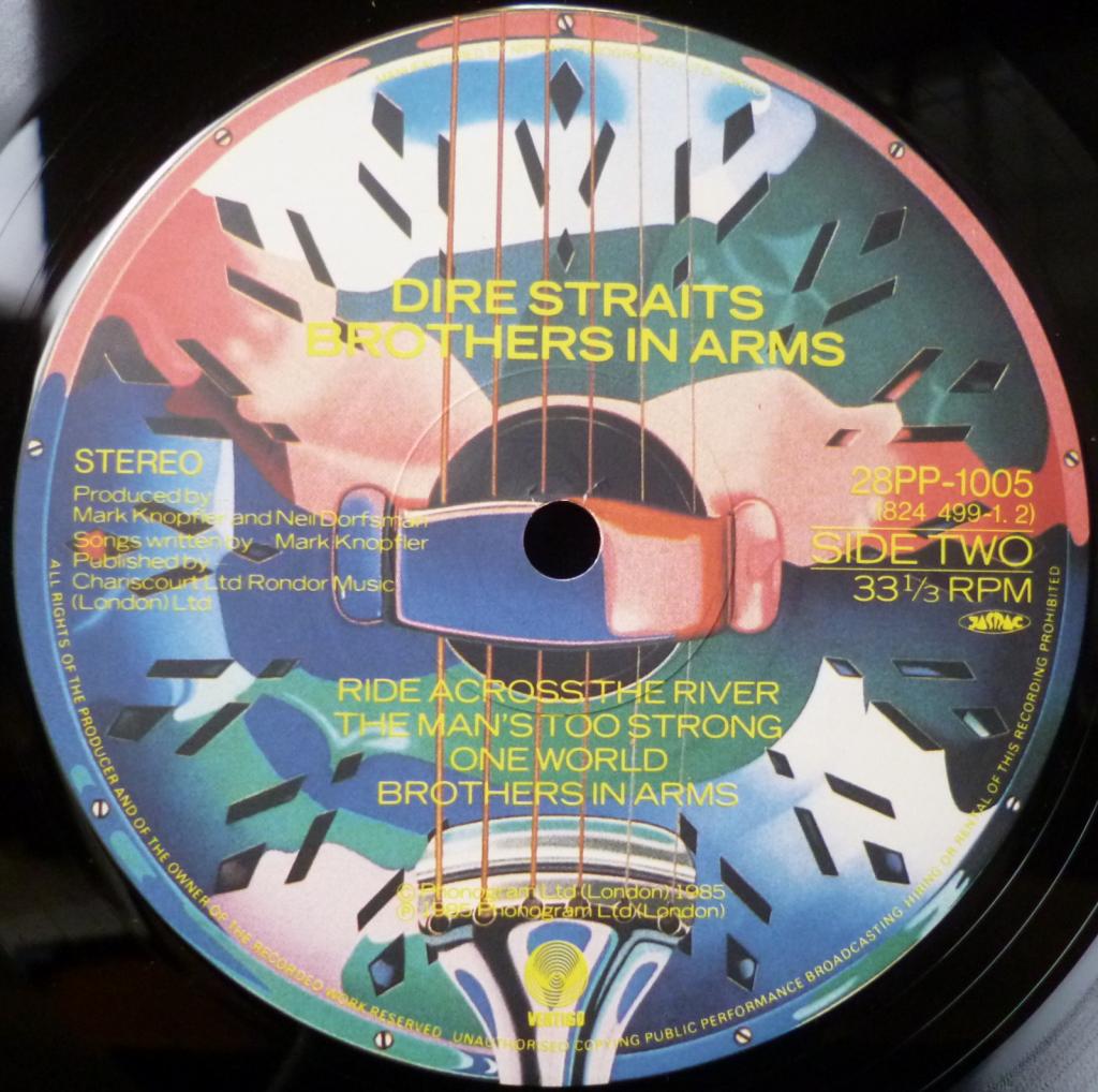 2. A2 Money For Nothing 7:03 3. A3 Walk Of Life 4:07 4. A4 Your Latest Trick 4:38 5. A5 Why Worry 5:22 6. B1 Ride Across The River 6:55 7. B2 The Man's Too Strong 4:37 8. B3 One World 3:36 9. B4 Brothers In Arms 6:57 |