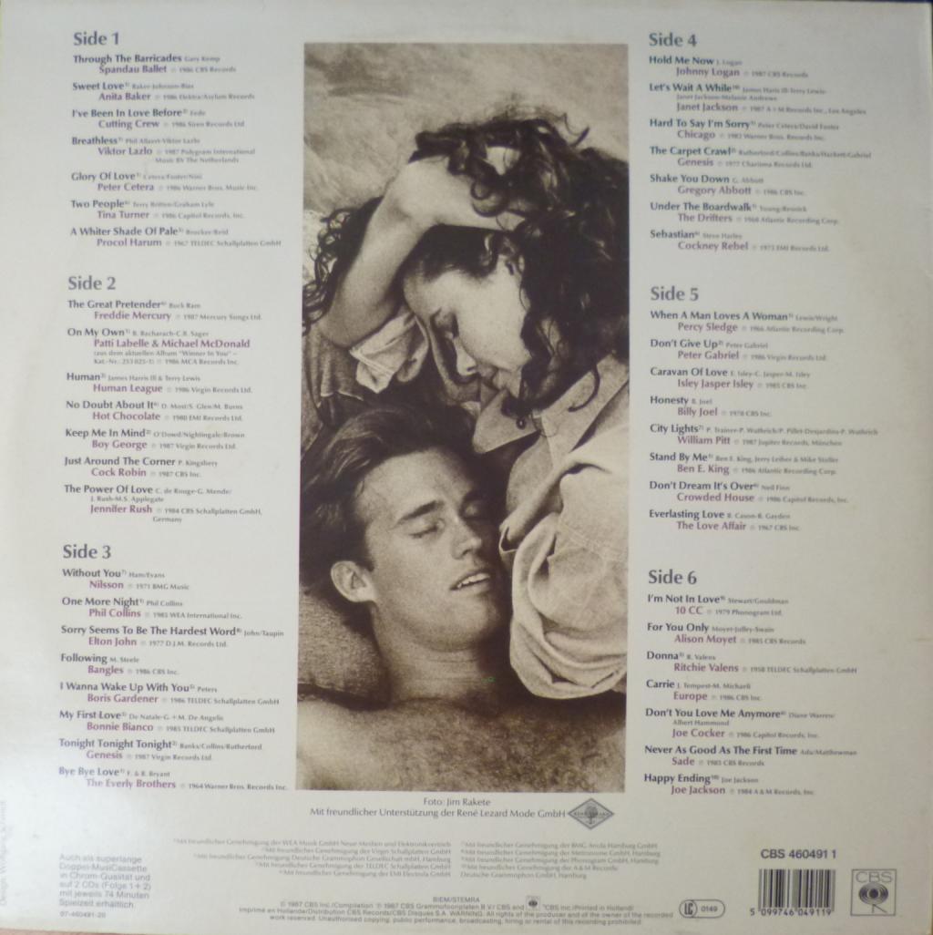 2. Viktor Lazlo– Breathless 3. Peter Cetera– Glory Of Love 4. Tina Turner– Two People 5. Procol Harum– A Whiter Shade Of Pale 6. Freddie Mercury– The Great Pretender 7. Patti LaBelle & Michael McDonald– On My Own 8. The Human League– Human 9. Hot Chocolate– No Doubt About It 10. Boy George– Keep Me In Mind 11. Cock Robin– Just Around The Corner 12. Jennifer Rush– The Power Of Love 13. Nilsson– Without You 14. Phil Collins– One More Night 15. Elton John– Sorry Seems To Be The Hardest Word 16. Bangles– Following 17. Boris Gardiner– I Wanna Wake Up With You 18. Bonnie Bianco– My First Love 19. Genesis– Tonight Tonight Tonight 20. The Everly Brothers*– Bye Bye Love 21. Johnny Logan– Hold Me Now 22. Janet Jackson– Let's Wait A While 23. Chicago– Hard To Say I'm Sorry 24. Genesis– The Carpet Crawl 25. Gregory Abbott– Shake You Down 26. The Drifters– Under The Boardwalk 27. Cockney Rebel– Sebastian 28. Percy Sledge– When A Man Loves A Woman 29. Peter Gabriel– Don't Give Up 30. Isley Jasper Isley– Caravan Of Love 31. Billy Joel– Honesty 32. William Pitt– City Lights 33. Ben E. King– Stand By Me 34. Crowded House– Don't Dream It's Over 35. The Love Affair– Everlasting Love 36. 10cc– I'm Not In Love 37. Alison Moyet– For You Only 38. Ritchie Valens– Donna 39. Europe– Carrie 40. Joe Cocker– Don't You Love Me Anymore 41. Sade– Never As Good As The First Time 42. Joe Jackson– Happy Ending |
