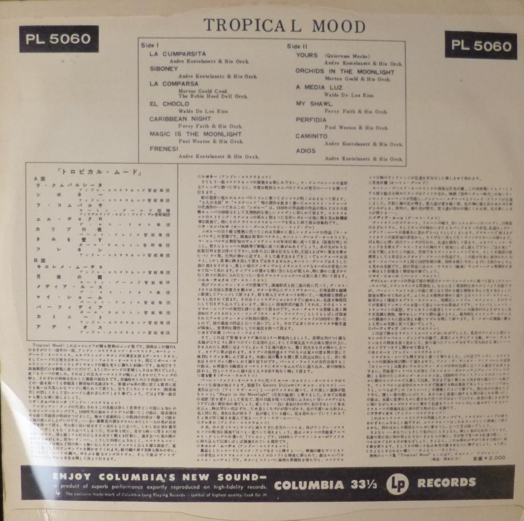 Andre Kostelanetz Percy Faith Waldo De Los Rios Morton Goul Paul Weston Robin Hood Dell Orchestras  V/A "Tropical Mood"