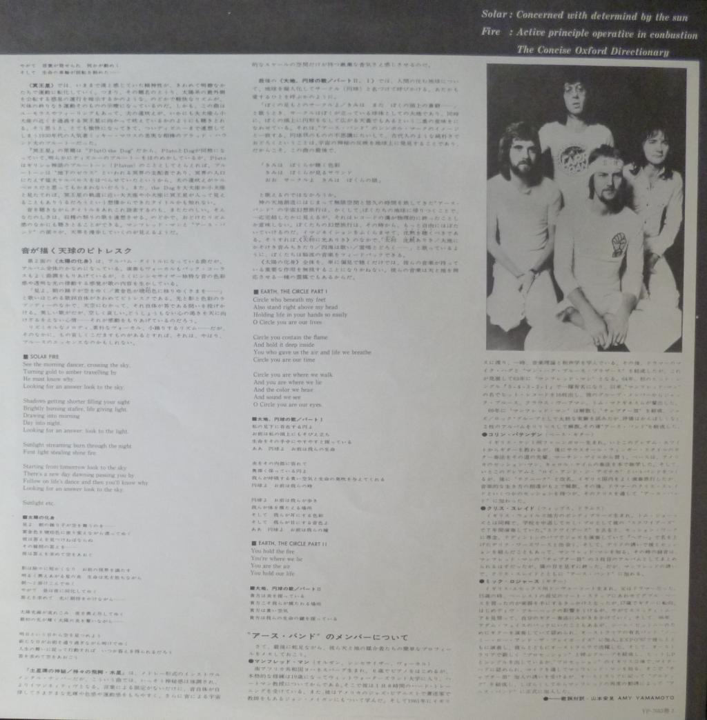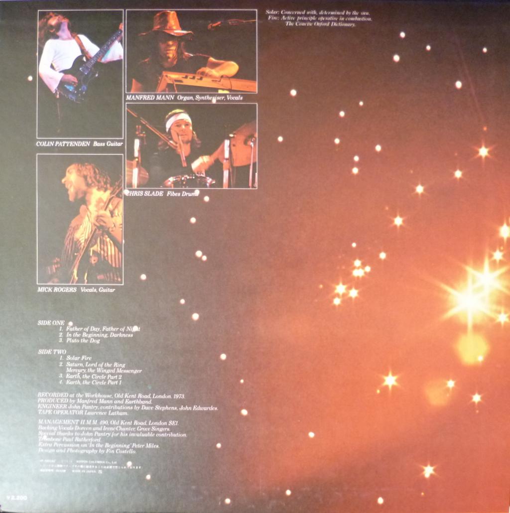 В 1971 году, после неудачной попытки реализовать свои джаз-роковые устремления, клавишник Манфред Мэнн собрал новую команду, получившую название Manfred Mann’s Earth Band. Помимо него самого, членами "Земного Оркестра" стали певец и гитарист Мик Роджерс, басист Колин Паттенден и ударник Крис Слэйд. Постепенно забывая о своем джазовом и ритм-энд-блюзовом прошлом, Мэнн повел свой коллектив новой дорогой и, в конце концов, вывел собственную формулу арт-рока. Первый серьезный коммерческий успех пришел к коллективу с выходом альбома "Solar Fire" (1973). Insert |