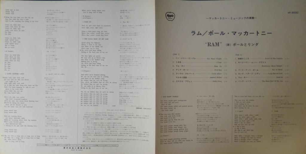 "Ram" - студийный альбом Пола и Линды Маккартни, записанный в январе-марте 1971 года в RCA Studios, Нью-Йорк, и выпущенный Apple Records в мае 1971 года. Диск поднялся до #1 в UK Albums Chart и до #2 в Billboard 200. 9 июня альбом получил в Британии "золотой" статус. Если первый альбом Маккартни написал и записал самостоятельно, то в работе над вторым альбомом, помимо Линды, приняли участие гитаристы Дэйв Спиноза (через два года сыгравший и с Джоном Ленноном в "Mind Games") и Хью Маккрекен, а также барабанщик Денни Сейвелл, впоследствии ставший участником Wings. Японский первый пресс. 2,000 йен. Gatefold. OBI. Insert soc |