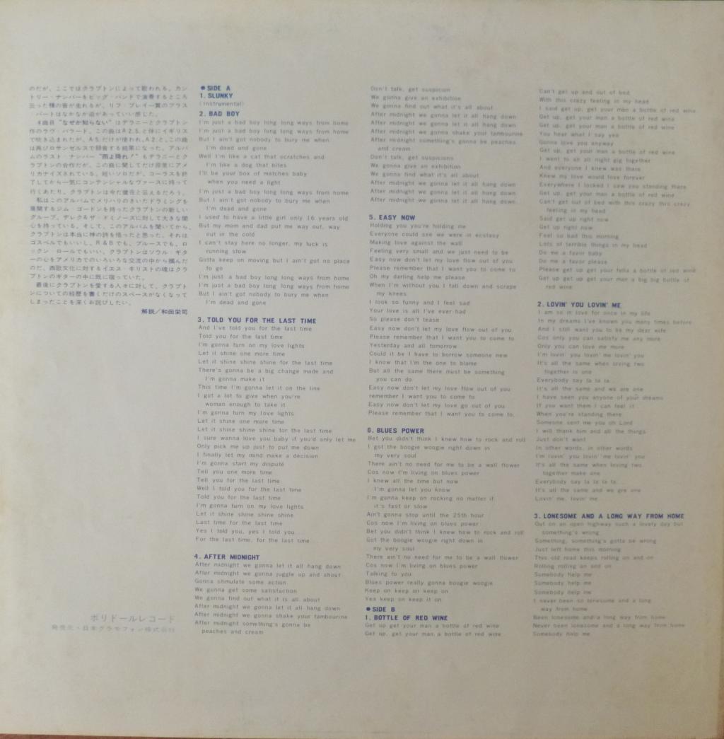 Дебютная работа, выпущенная под собственным именем "Eric Clapton" в 1970-ом году, стала классической в жанре блюз-рока. Этот альбом был записан Клэптоном (параллельно с участием в проекте Derek & The Dominoes) после завершения совместного концертного тура с американским дуэтом Delaney & Bonnie, причём они приняли непосредственное участие в записи альбома, а Делани стал его продюсером. Делани и Бонни Брамлетт являются также соавторами Клэптона в большинстве композиций на этом альбоме! Gatefold. Insert.
