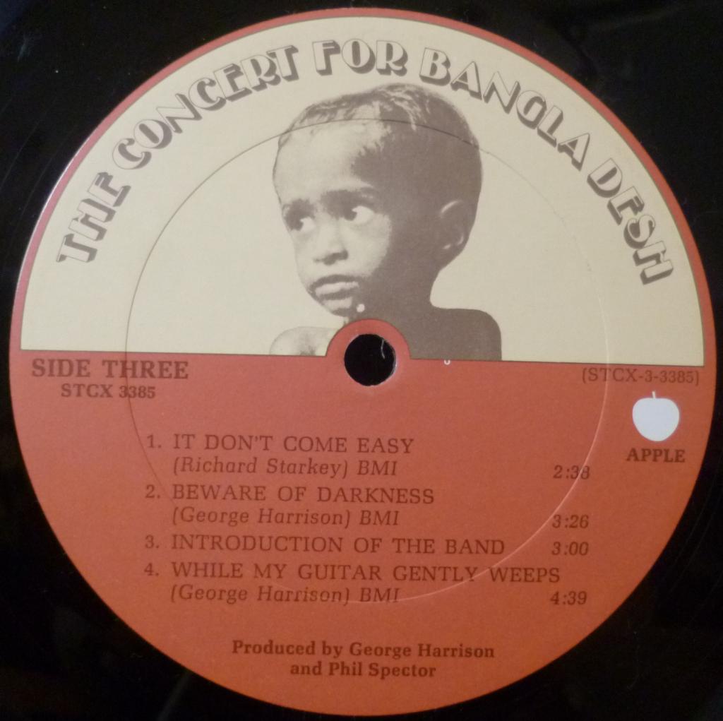 "The Concert For Bangladesh": первый крупный благотворительный концерт в истории, организованный Джорджем Харрисоном. Этот концерт, состоявшийся 1 августа 1971 года, стал огромным событием не только в мире музыки, но и вообще в жизни целого земного шара. Впервые для того, чтобы собрать деньги в помощь бедствующим жителям далекой и чрезвычайно бедной страны, о которой мало кто даже слышал дотоле, вышли на сцену музыканты такого масштаба - двое из участников недавно распавшихся The Beatles, Эрик Клэптон, Боб Дилан, Леон Расселл, Badfinger, Рави Шанкар. Целых два концерта были даны в тот день в знаменитом нью-йоркском зале Madison Square Garden. На них побывали более сорока тысяч зрителей, ставших таким образом участниками исторического события - концерта суперзвезд, и в то же время - первой грандиозной благотворительной акции. Все прочие были уже после того - и Live Aid, и так далее. Репресс японского бокс-сета 1975-го года, который состоит из 3 винилов, вкладки и 64-страничного красочного буклета с многочисленными фотографиями и OBI в комплекте.