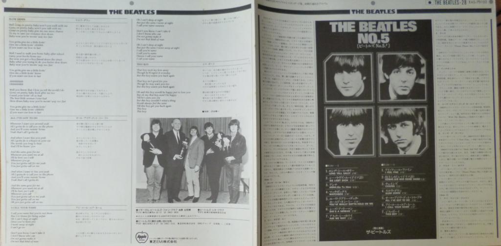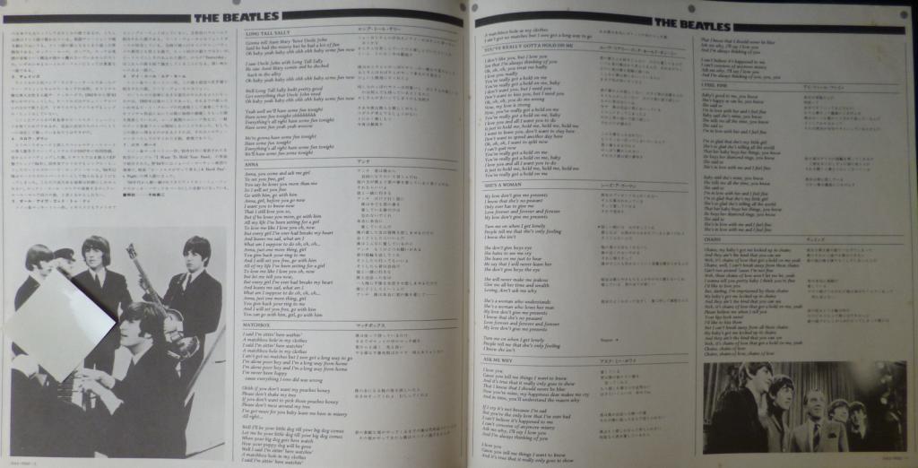 The Beatles - культовая британская рок-группа из Ливерпуля: Джон Леннон (ритм-гитара, губная гармоника, вокал), Пол Маккартни (бас-гитара, фортепиано, вокал), Джордж Харрисон (соло-гитара, вокал), Ринго Старр (ударные, вокал). Группа считается величайшей в истории. The Beatles внесли колоссальный вклад в развитие рок-музыки, а внешний вид, манера поведения и убеждения музыкантов привели к значительному влиянию группы на культурную и социальную революцию 1960-х. Группа The Beatles достигла беспрецедентной популярности и стала одним из самых ярких феноменов мировой культуры XX века, продав по всему миру более 1 миллиарда пластинок! "Beatles " - выпущенный в 1965-ом году японский сборник различных по редкости песен Beatles, а также различных версий хитов, например, "She Loves You" на немецком языке. Японский репресс 1976-го года. OBI, Insert. |