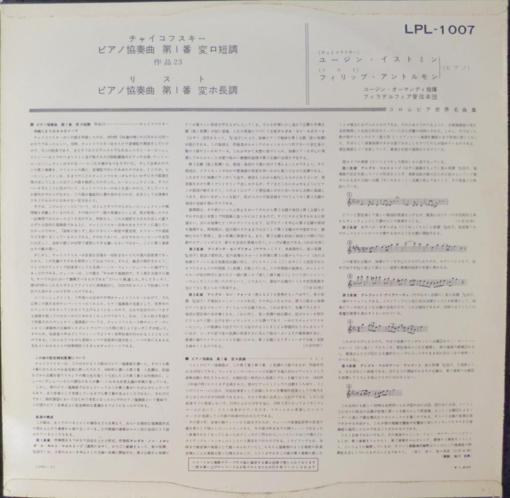 Piano Concerto No.1Pyotr Ilyich Tchaikovsky / Franz Liszt ID : 33919 Стиль: Classical Издание: Оригинал Год издания: 1960 Лейбл: Columbia Страна: Япония Размер пластинки: LP Состояние: nm/m Винил-код: LPL-1007 ПОЧЕМУ ПОКУПАЮТ ИМЕННО У НАС