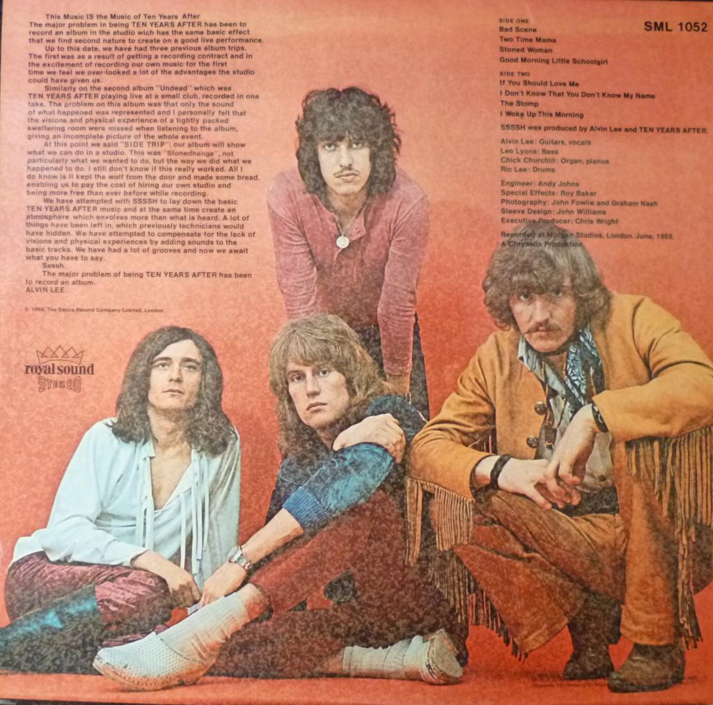 "Ssssh." - четвертый альбом английской блюз-рок-группы Ten Years After, выпущенный в августе 1969 года. Можно перевести как междометие "Тсссс!", в смысле "Тише!" Группа записала альбом в лондонской студии Morgan в июне 1969 и поехала "завоевывать" родину блюза - Америку. Альбом вышел в продажу очень вовремя - в августе 1969, когда группу настиг ошеломительный успех после выступления на Вудстокском фестивале. "Ssssh." считается одним из лучших студийных альбомов Ten Years After и одним из лучших образцов блюз-рока конца 1960-х. |