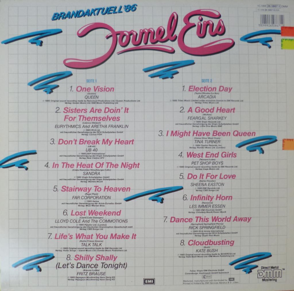 Главная ➜ Pop➜ V/A "Formel Eins - Brandaktuell 86"➜ Queen Tina Turner Sandra UB40 Pet Shop Boys Eurythmics Talk Talk
