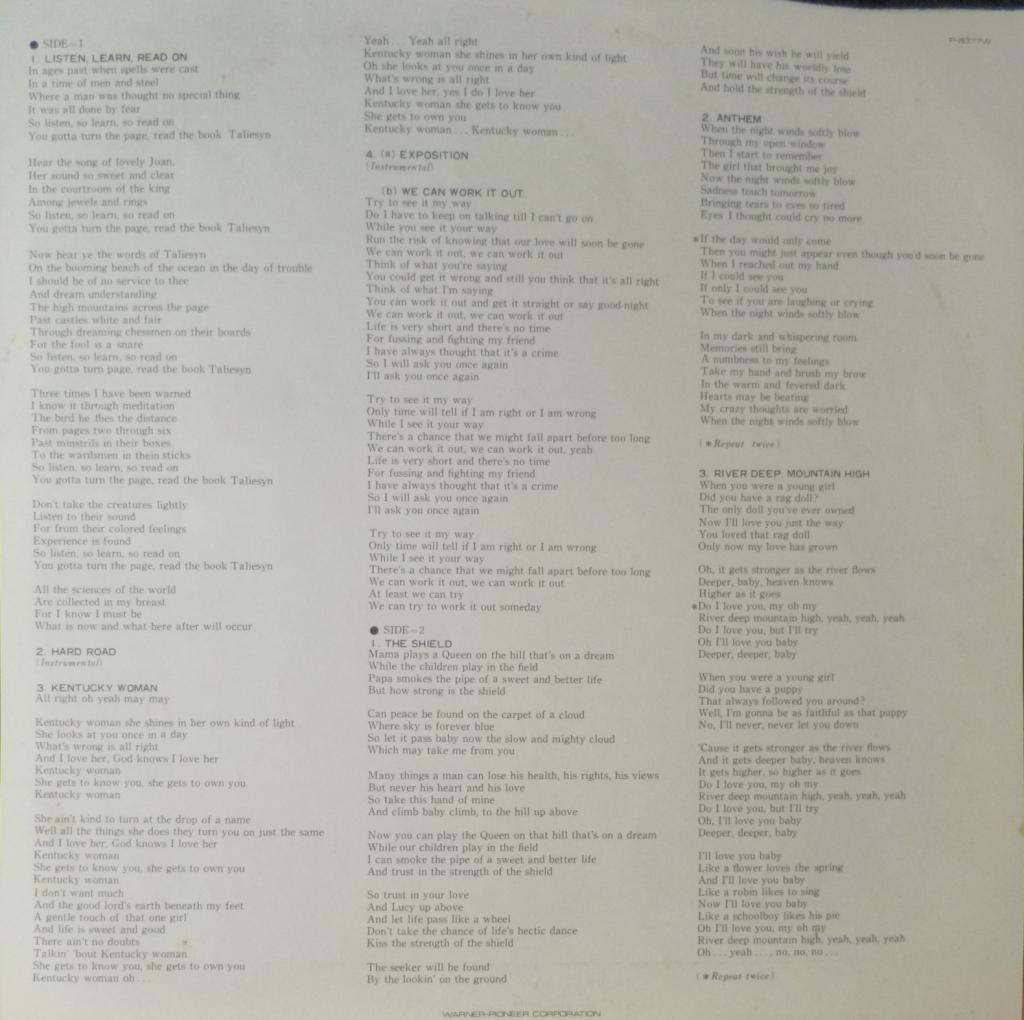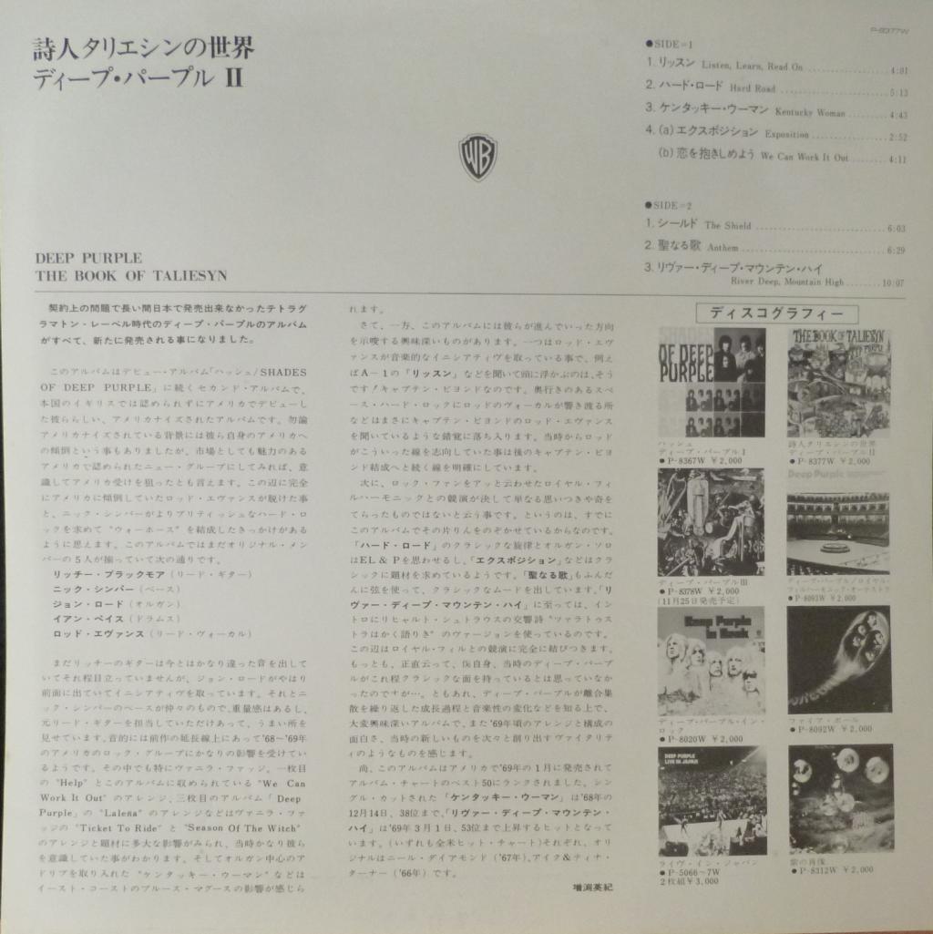 "The Book of Taliesyn" - второй студийный альбом Deep Purple, записан оригинальным составом. Вышел в США в октябре 1968 года, а в Англии в июне 1969 года. На альбоме содержатся, ставшие со временем настоящей классикой, "Wring That Neck" и "Kentucky Woman". Репресс 1973-го года. Price code: йен. OBI. Gatefold. Insert.