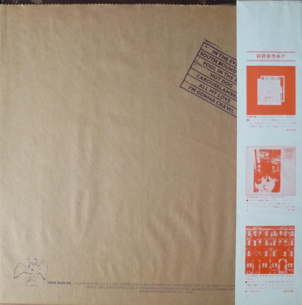 In Through The Out Door (A Sleeve Variant)ID : 33975 Стиль: Hard Rock Издание: Оригинал Год издания: 1979 Лейбл: Swan Song Страна: Япония Размер пластинки: LP Состояние: m/m Винил-код: P-10726N ПОЧЕМУ ПОКУПАЮТ ИМЕННО У НАС