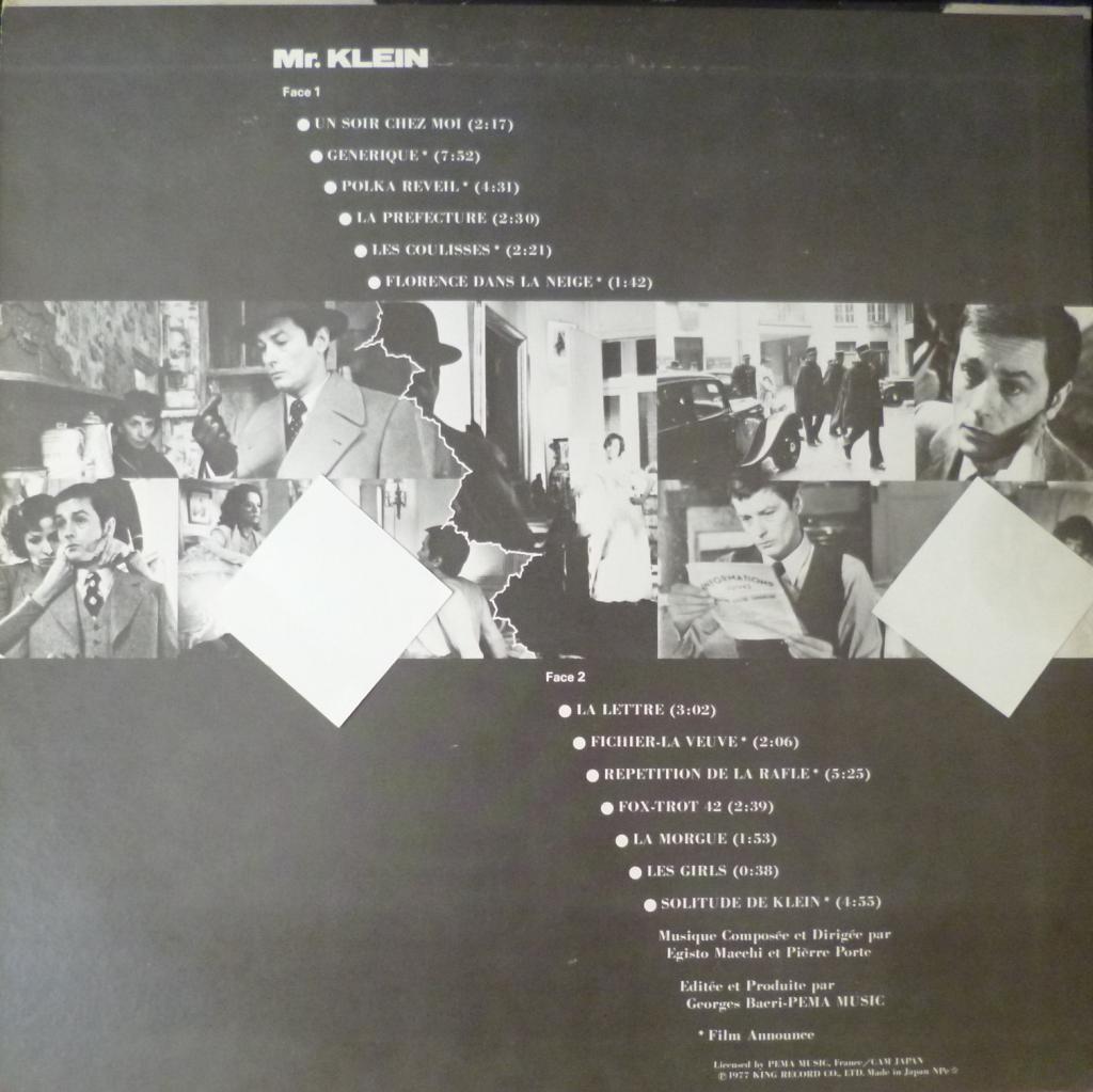 «Мсье Кляйн» — знаменитый детективно-драматический фильм 1976 года режиссёра Джозефа Лоузи с Аленом Делоном в главной роли. Фильм является совместным производством Франции и Италии. Премьера состоялась на Каннском кинофестивале 1976 года. «Мсье Кляйн» получил всеобщее признание критиков и завоевал три премии «Сезар»: за лучший фильм, лучшую режиссуру и лучшие декорации. Ален Делон был номинирован как лучший актёр. Перед вами звуковая дорожка от композитора Эджисто Макки и руководителя оркестра Пьера Порте к этому легендарном фильму. Insert.  |