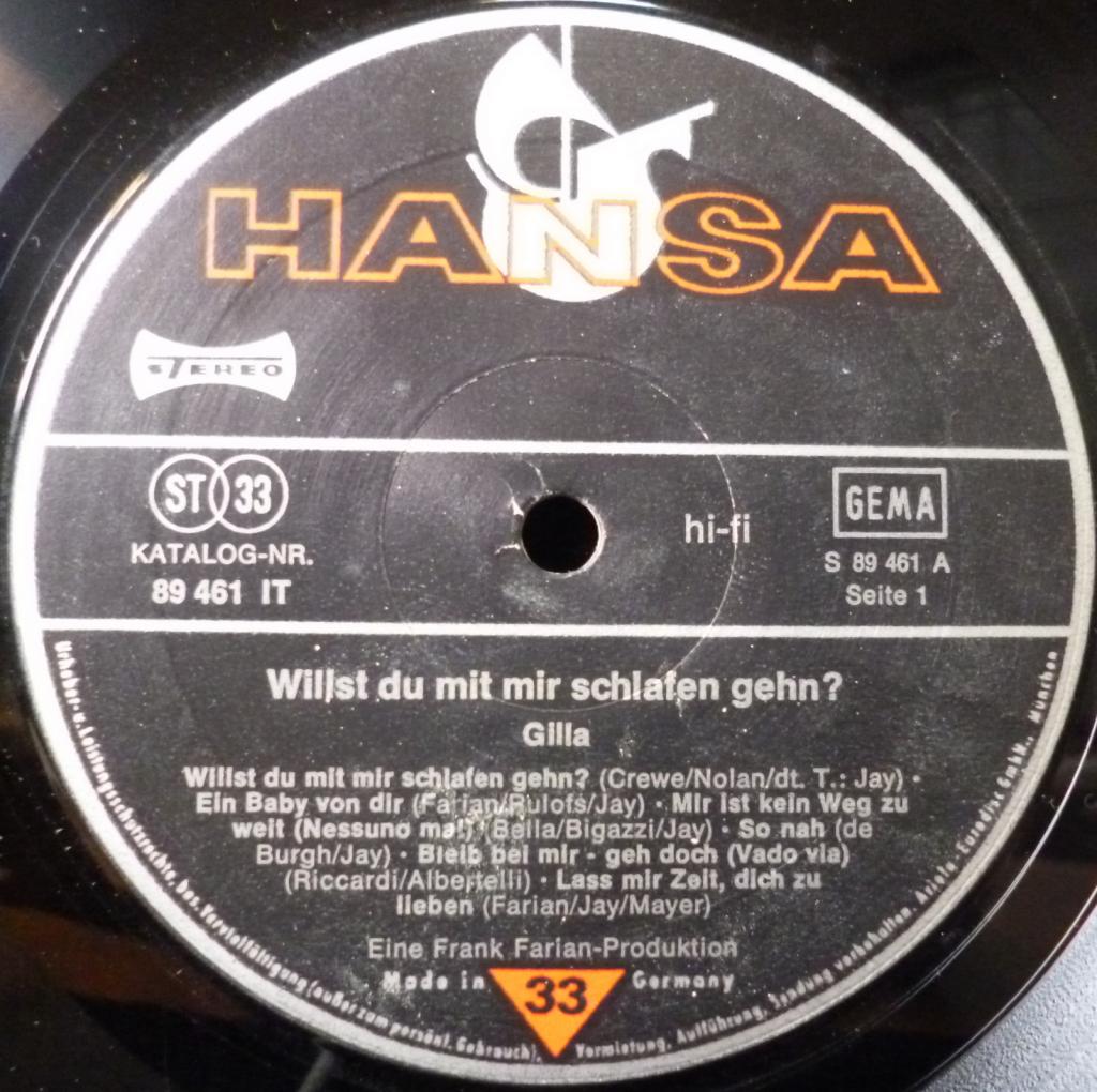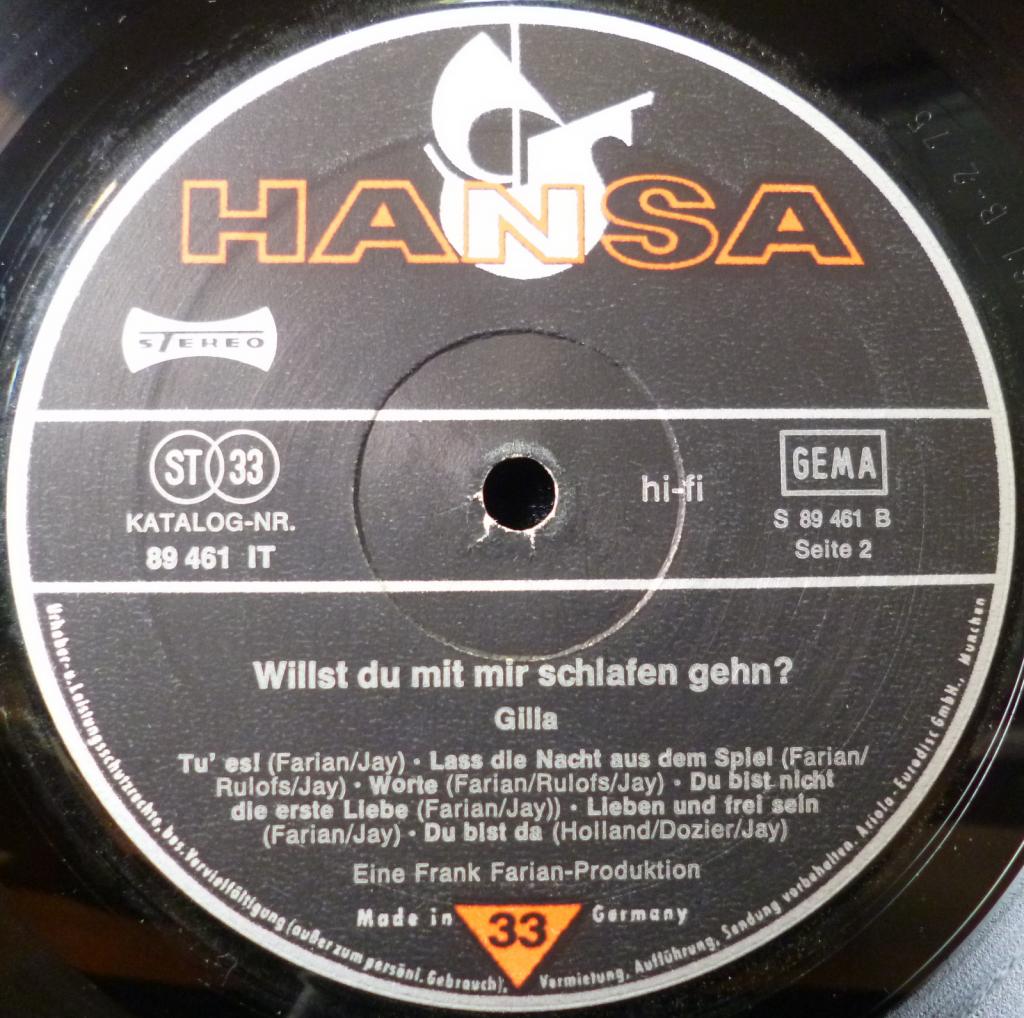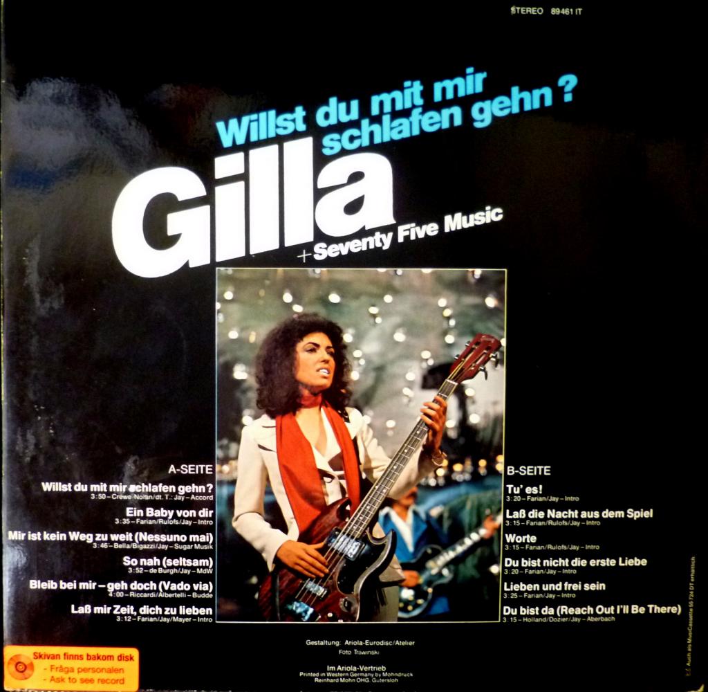 "Willst Du Mit Mir Schlafen Gehn?" - первый альбом Джиллы оказался смешением большого количества различных музыкальных жанров, таких как рок, фанк и диско, но тем не менее это был успех, и альбом неплохо раскупался, если учесть то, что все песни на немецком языке. Альбом включает ведущий хит-сингл "Tu`es", который завоевал одно из призовых мест в немецком ТOP10 в начале 1976 года. Помимо различных кавер-версий песен Криса Де Бурга, Глории Гейнор и других исполнителей, в альбом вошли вещи, которые впоследствии станут хитами группы Boney M: "Mir Ist Kein Weg Zu Weit" ("Take The Heat Off Me") и "Lieben Und Frei Sein" ("Lovin`Or Leavin`"). Продюсер - Frank Farian. *конверт ламинированный в состоянии NM- soc